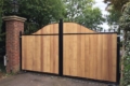 When manufacturing our wooden gates we make sure that the highest quality of wood is used not only giving a stunning finish but ensuring endurance to all weather conditions. A variety of choices of wood is offered from Siberian Larch, Redwood, Western Red Cedar softwood to Iroko or European Oak hardwood.
